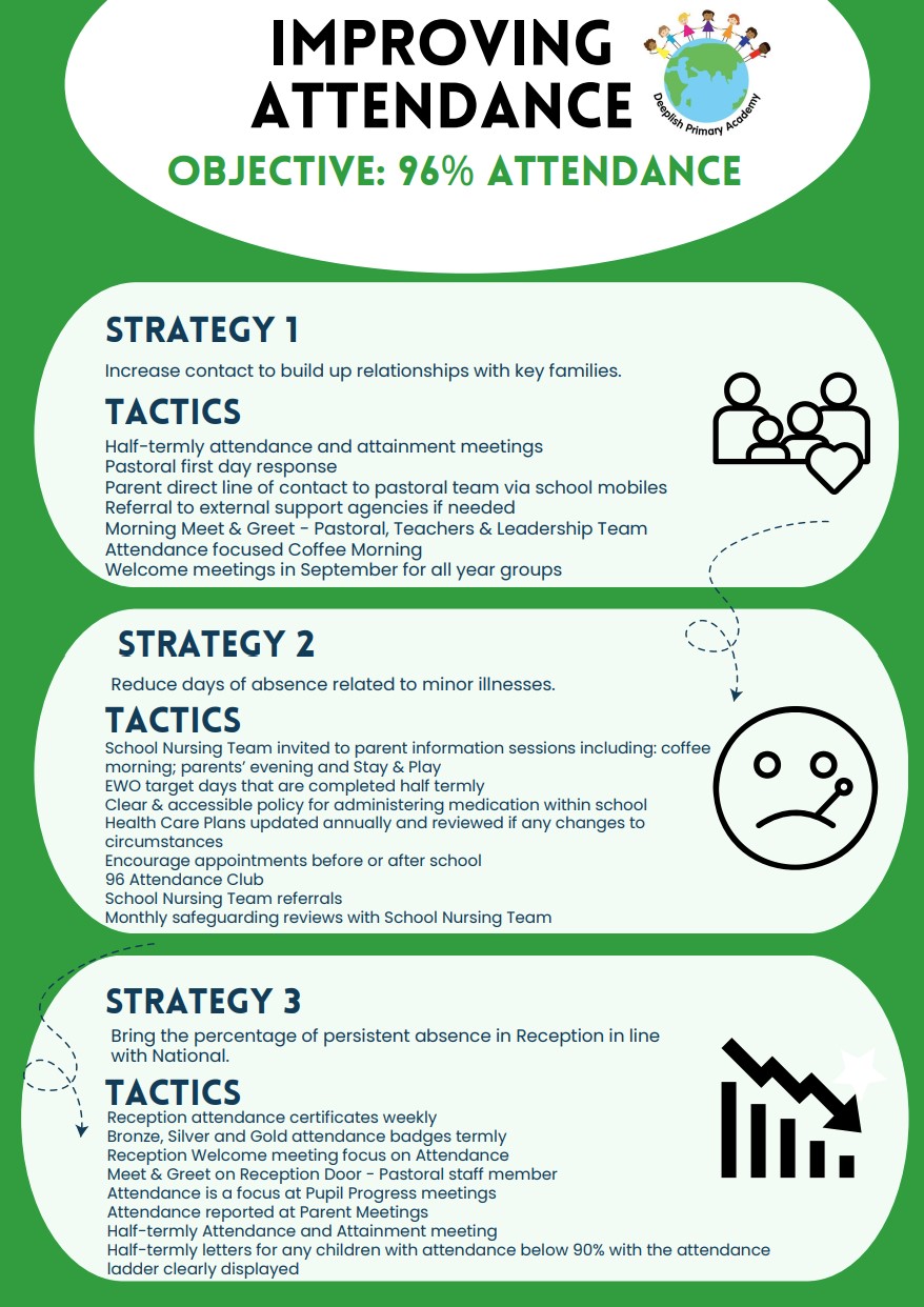 Good attendance is vital if your child is to achieve and make good progress.