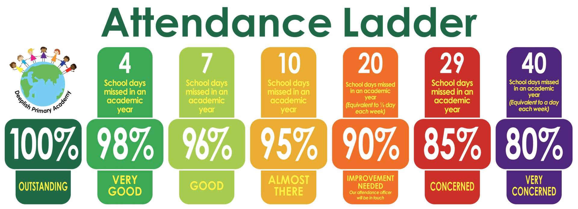 Good attendance is vital if your child is to achieve and make good progress.