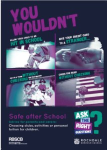 If your child goes to a club, madrassa or any organised event after school please look at the information about Rochdale’s Safe After School campaign. You can visit the site by clicking here or click on the image below.